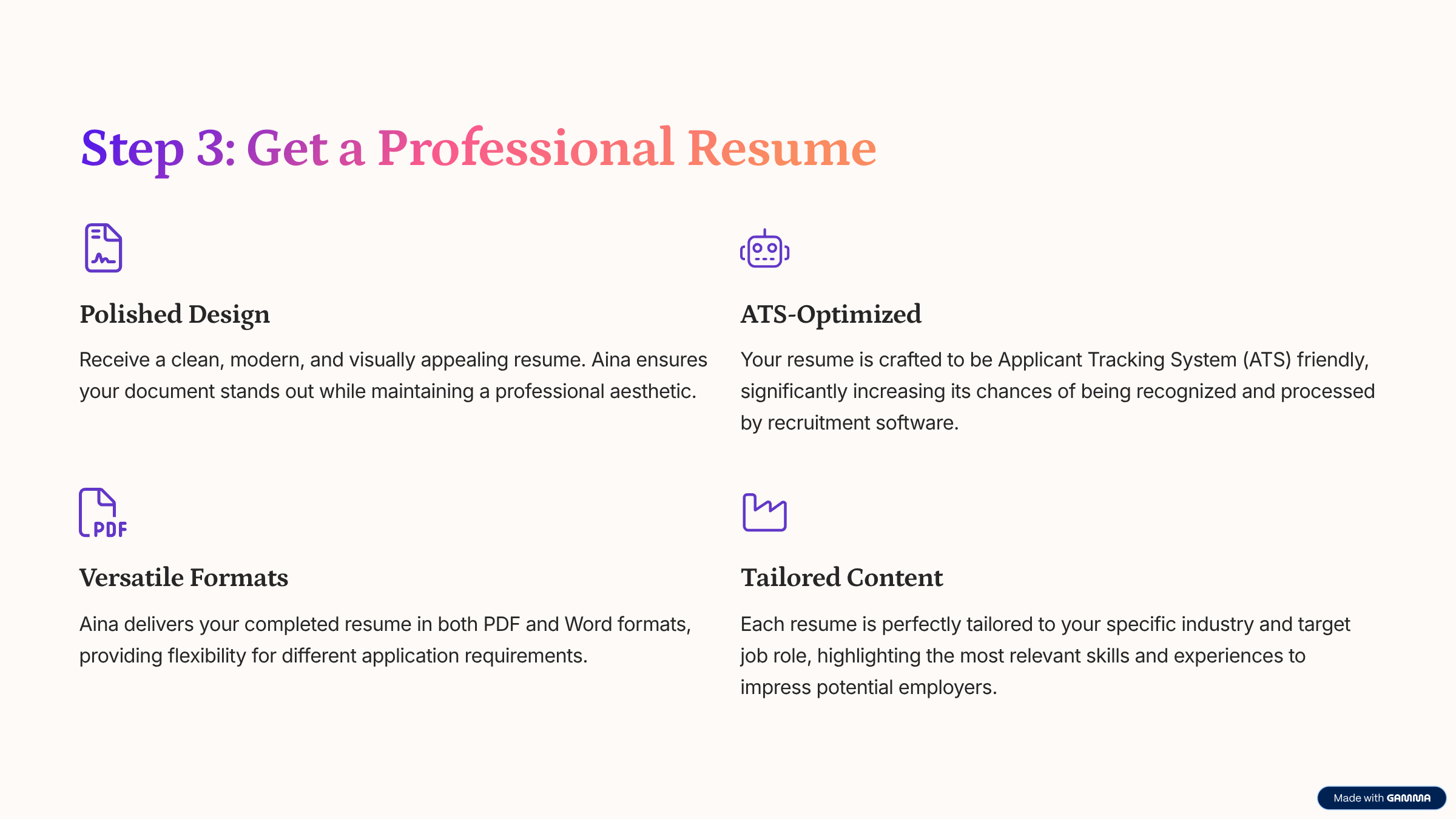 Tailored for your job role with modern formatting, keyword optimization, and clean design